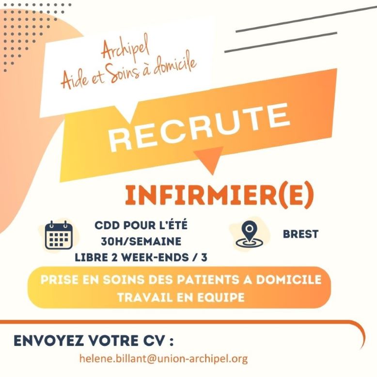 📌Le SSIAD recrute des Infirmier.e.s sur le secteur de Brest. Rejoignez nos équipes d’aides-soignant.e.s et d’infirmiers dans la prise en soins à domicile. CDD temps partiel, libre 2 WE/3. Contact : helene.billant@union-archipel.org📨 #brest#emploi#recrutement #soin #domicile #été